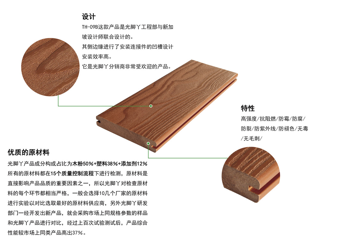 广场步行街地板 TH-09B 适用范围:运动场地、走廊、户外游泳池、阳台、露台、天台、别墅院落、公园道路铺板、栈道、广场、其他 品牌:光脚丫 编号:TH-09B 材质:木塑 名称:高强度户外木塑地板 规格:134 * 24mm 在线留言 × 在线留言 *姓名: *电话: *邮箱: *主题: *内容: 我们将会在24小时内给您回复! 产品详情